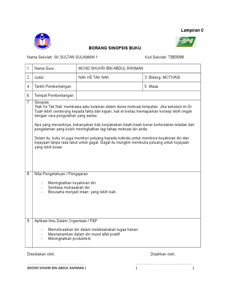Borang Penulisan Sinopsis Buku Ldp 2 Pdf